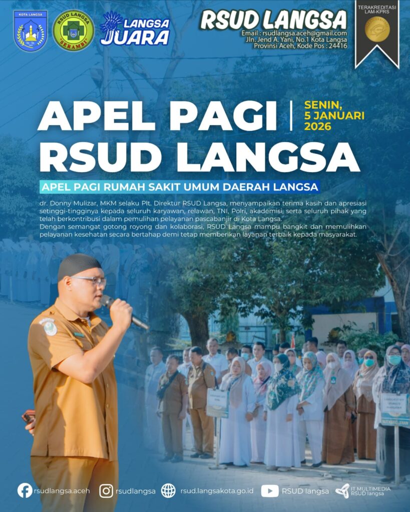 Dalam amanatnya, beliau menyampaikan ucapan terima kasih dan apresiasi setinggi-tingginya kepada seluruh karyawan RSUD Langsa yang terus bergotong royong memulihkan pelayanan rumah sakit pasca banjir yang melanda Kota Langsa.
