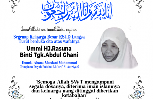 Segenap Keluarga Besar RSUD Langsa turut berduka cita atas wafatnya Ummi Hj. Rasuna binti Tgk. Abdul Ghani, Ibunda Abana Murdani…