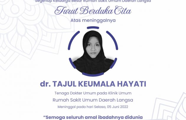 Segenap Keluarga Besar RSUD Langsa turut berduka cita atas wafatnyadr. Tajul Keumala Hayati(Dokter Umum pada Klinik Umum RSUD Langsa)