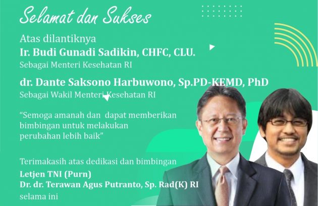 Selamat dan Sukses atas dilantiknya Ir. Budi Gunadi Sadikin, CHFC, CLU. sebagai Menteri Kesehatan RI dan dr. Dante Saksono Harbuwono,…