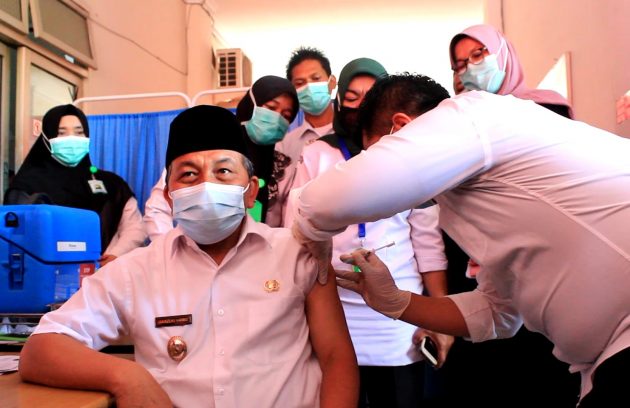 Wakil wali kota langsa, Dr. H. Marzuki Hamid, MM, mengawali suntik vaksin di rumah sakit umum daerah langsa setelah meresmikan…
