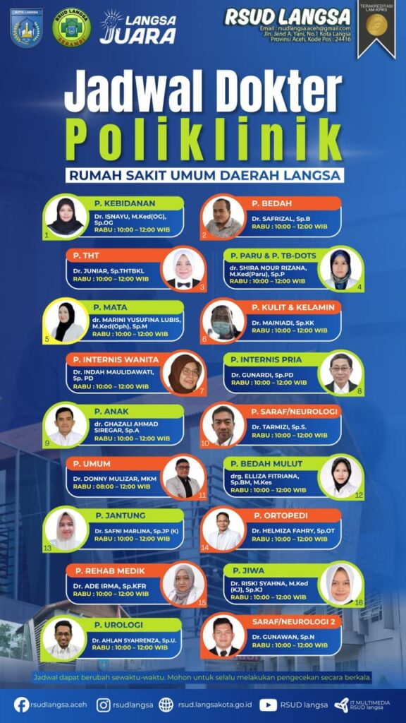 JADWAL DOKTER POLIKLINIK RSUD LANGSA – RABU, 15 APRIL 2026
