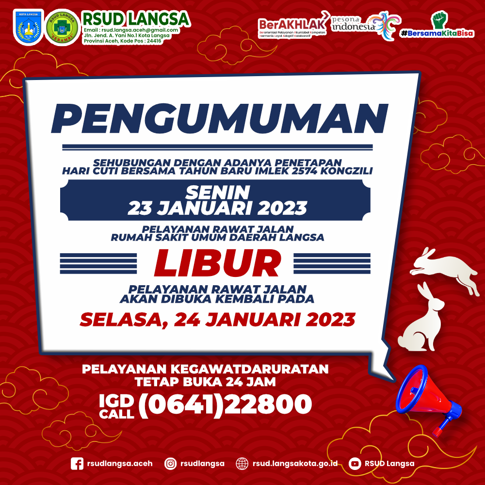 PENGUMUMAN LIBUR RAWAT JALAN ( 23 JANUARI 2023 )