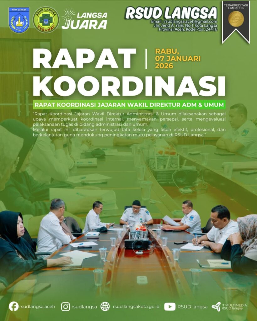 Melalui rapat ini, diharapkan terwujud tata kelola yang lebih efektif, profesional, dan berkelanjutan guna mendukung peningkatan mutu pelayanan di RSUD Langsa.