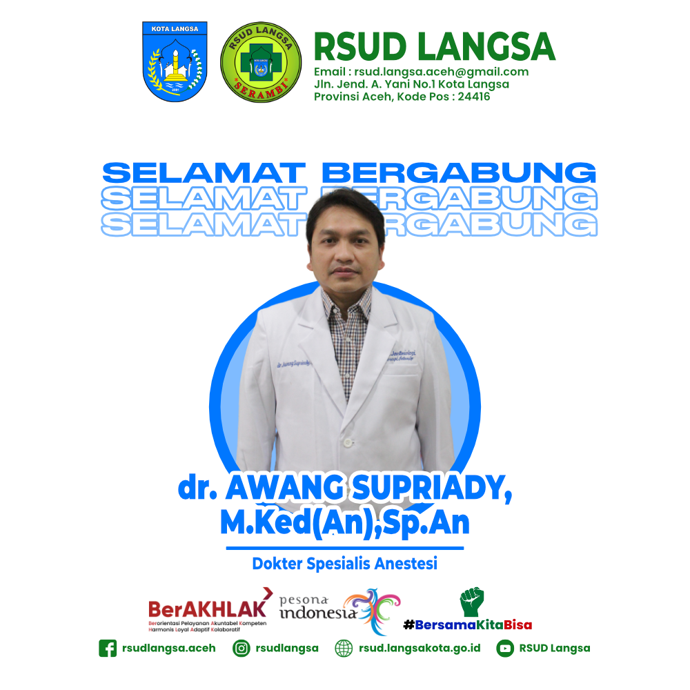 Selamat bergabung dr. AWANG SUPRIADY,M.Ked(An),Sp.An (Dokter Spesialis Anestesi).