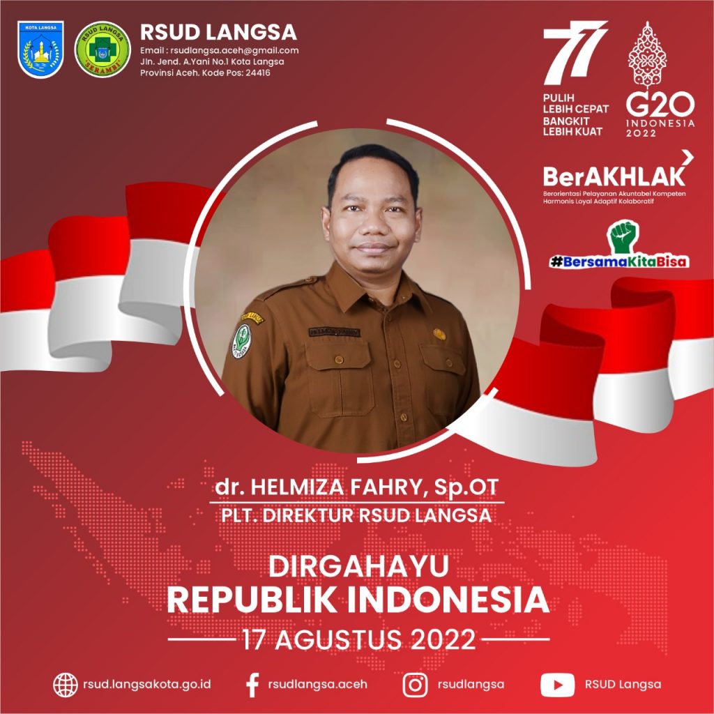 Keluarga Besar RSUD Langsa mengucapkan Selamat Dirgahayu Republik Indonesia ke 77 (17 Agustus 1945 – 17 Agustus 2022)